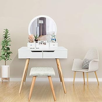 Get Modern Dressing Table With Mirror Multifunctional Makeup Vanity Set Drawers & Stool Included Pictures. The dressing table can be used as a nightstand to save your bedroom space, also great as a study or office desk when the top half is. Vanity beauty station makeup table and wooden stool 3 mirrors and 5 organization drawers set.